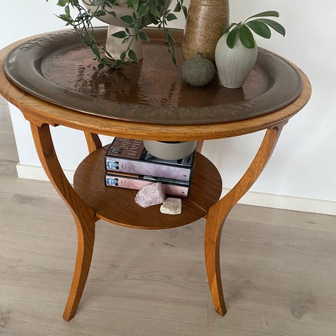 Selger dette bordet , rundt bord med kule- ben og hylle!