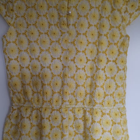 Kjempesøt gul t-skjorte m små hvite blomster i stripete bomull fra «KappAhl» i str. 146/152 cm. Pent/lite brukt av enebarn og fremstår svært fin.
