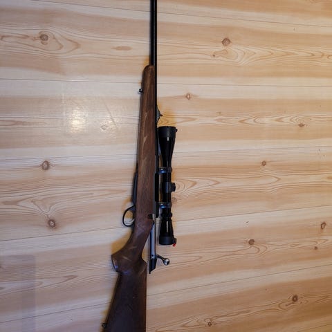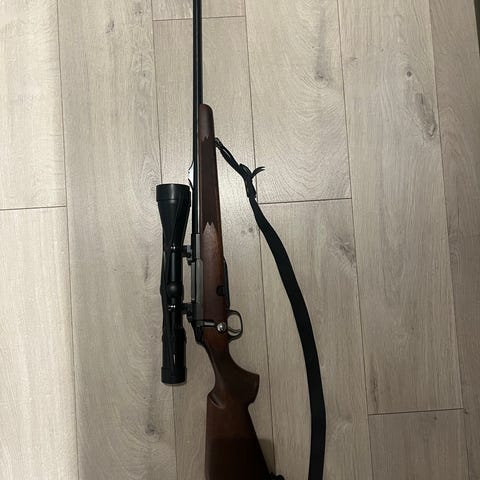 Børse kjøpt brukt i 2009 og er tatt godt vare på. Justerbar kinnstøtte. Rifla er presis. Brukt på bane og i storviltjakt. Veier 4,3 kg med reim. Plass til 6 skudd i magasinet + 1 i løpet.