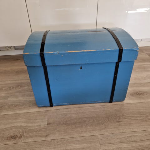 Selger en kiste til oppbevaring. Den har lås men jeg har ikke nøkkel til den, da den ble kjøpt på et loppemarked.