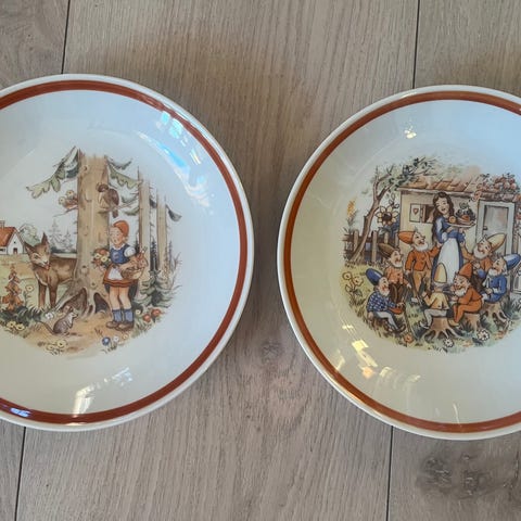 Kahla barnesevice, froskeprinsen og snehvit tallerken og dyp tallerken, lagd i Gdr. 75 kr stk