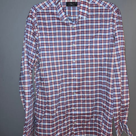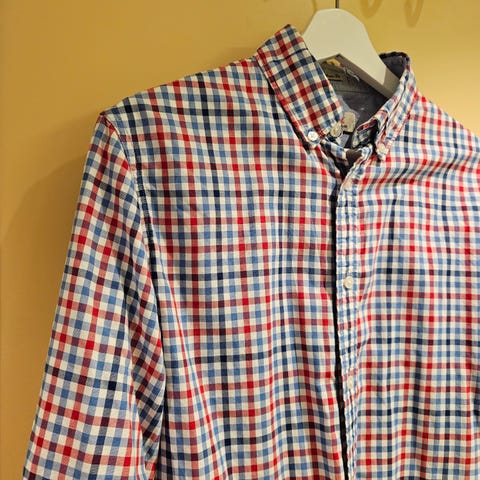Veldig fin Gant, rød, blå, grønn og hvit rutete skjorte. Pinpoint Oxford Fitted, 100%bomull.