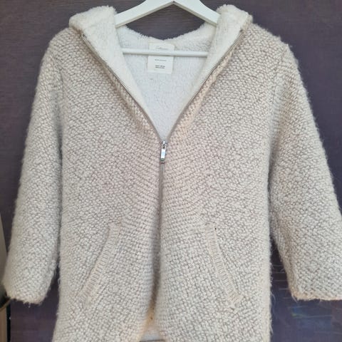Pent brukt og varm strikkejakke til jente. Den er varm og god inneholder mohair ull og fin detalj hjerte på ryggen