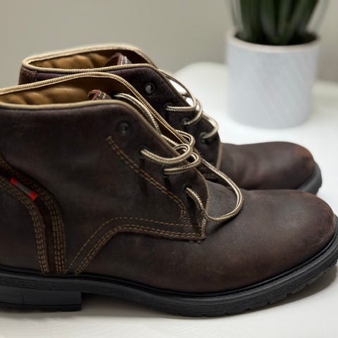 Den er god kvalitet merke sko. Ekte skinne og farger mørke brun.
