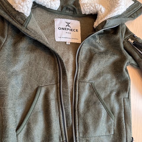 Helt ny «kosedress» fra Bruse. Fargen er litt oliven (vanskelig å få frem skikkelig på bilde). Ligger fortsatt i plast. Har brukt tilsvarende dresser, og de er deilige og myke innvendig. I bomull.
