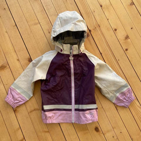 Godt brukt regnsett. Litt slitasje på rumpa og på refleks merka. Str. 104.