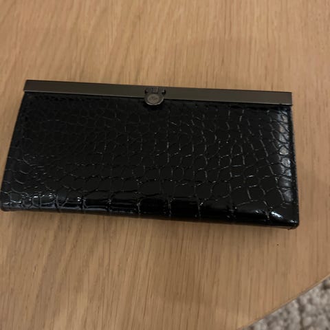 Helt ny pen clutch i lilla farge med skulderstropp. Clutch har et rom med glidelås og en lite rom også med glidelås.