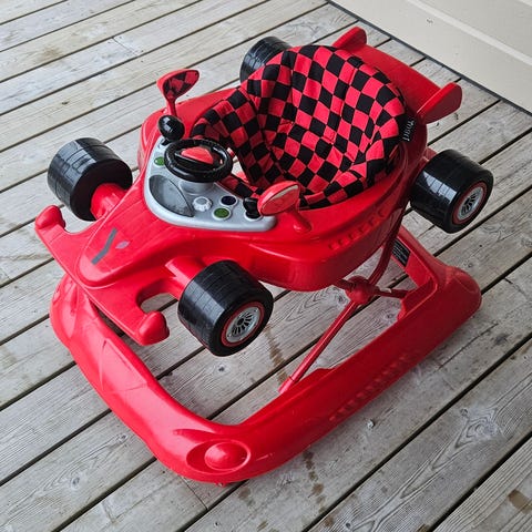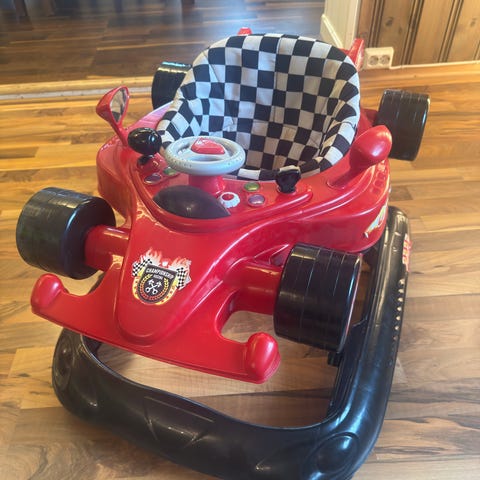 Har en gåbil som ble kjøpt til barnebarnet men ble ikke brukt så da prøver vi å selge den, bilen er hel og pen.