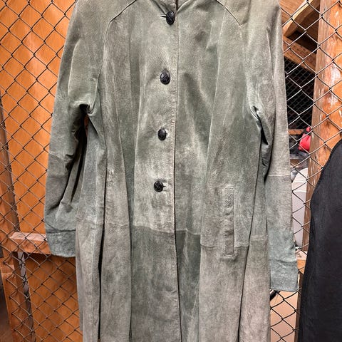 Svart, semsket skinnkåpe/ frakk fra Segal, a- form med fin volang, rekker til knærne på meg som er 172. God vidde og passer fra M til XL, ettersom hvordan man ønsker den. Selges kr 500,- pluss evt frakt. Kan sendes med postnord til kr 69,,- ( bildene er ikke så bra, kan sende flere om ønskelig 😊