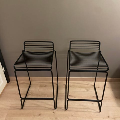 Selger to pent brukte barstoler fra Hay. Selges samlet for 3000, eller 1600 per stol. Ny pris er 3500 kr.