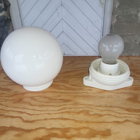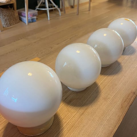 Kuplene er runde, i hvit opalinglass. De har ingen hakk eller skader. Gjengene ser feilfrie ut.