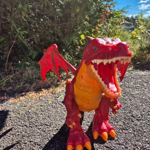 Blå isdrage som kan gå, brøle og har lys i øyne og munn.