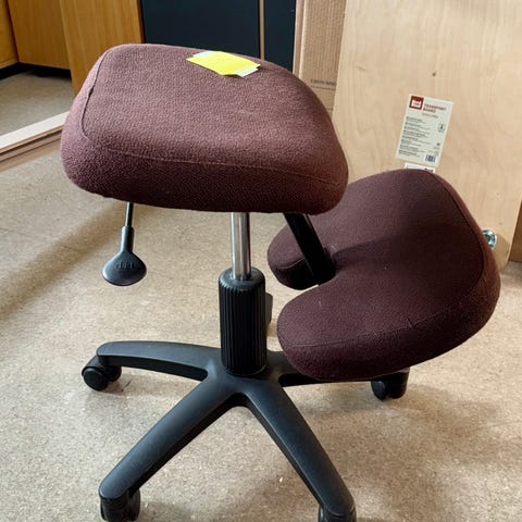 HÅG balans knestol selges billig. Stoffet må renses. Høydejustering har låst seg, men antar det kan ordnes med litt smurning.