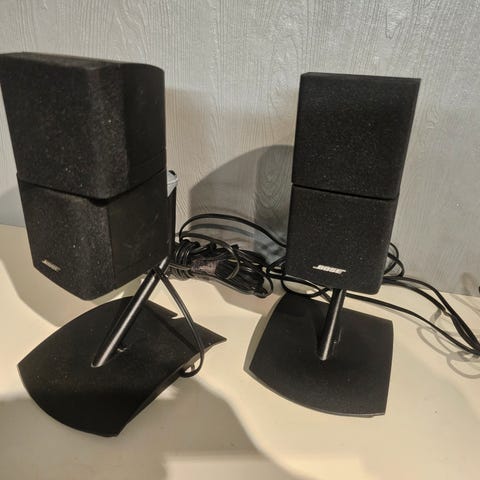 Vi selger en brukt liten høytaler ca 20 cm høy til Harman/Kardon høytaler surroundhøyttalersystem, modell SAT-TS7 BO. Dette er et pålitelig høytaler høyttalersystem kjent for å levere en balansert lydopplevelse med klarhet og dybde, ideell for både hjemmekino og musikk. Høyttaleren har et unikt trekantet design og stilren, sort finish, som vil passe godt inn i de fleste moderne hjem.