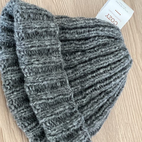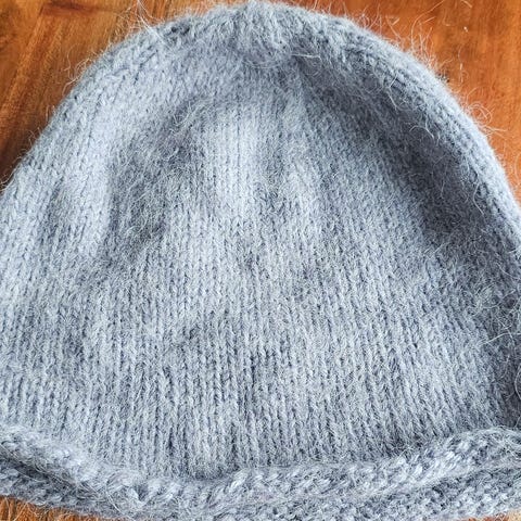 Lekker lue i blanding av ull og alpakka brodert med maskesting langs kanten.