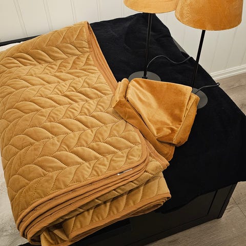 Nydelig sengeteppe (250 x 230 cm) i dus brun fløyel. Passer til dobbelseng. Lite brukt, liten slitasje siden det har vært i et feriehus.