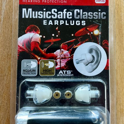 Disse ørepluggene, fra Earfilters.net, fungerer fantastisk godt for musikere. De filtrerer 3-10dB av lyden og lar din egen lyd kommer klart gjennom. Klem dem i lengderetningen mellom fingrene og sett hele veien inn i øregangen. Vaskbare og gjenbrukbare.