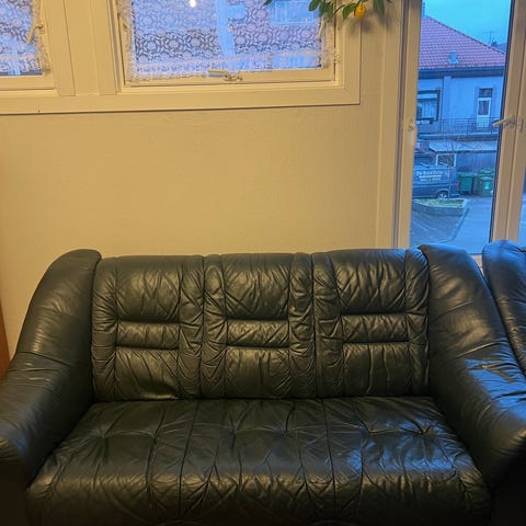 Meget pent brukt og godt vedlikeholdt sofagruppe i svart skinn. Ingen synlige skader. Høy kvalitet på sofaen. Ryggen kan legges bak på alle setene. Det følger med puff med plass ril lagring. Pris kan diskuteres ved rask handel. Måbhelst hentes - kan muligens avtale kjøring mot ekstra betaling.