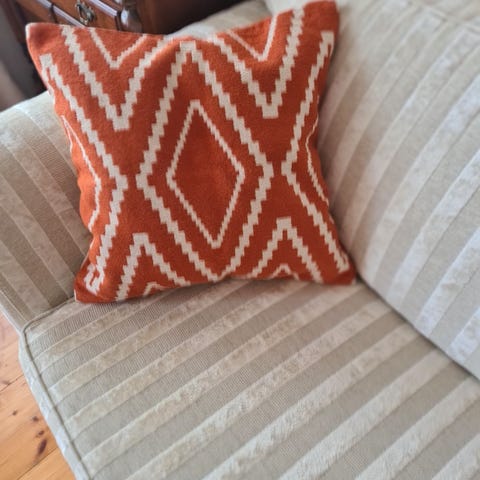 To gule putetrekk i velour fra H&M Home, pent brukt, 50x50, selges for 200 kr for begge, 100 pr stk
