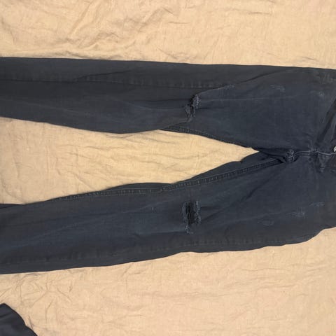 86 cm i livet. Innerben 73 cm. 4 lommer.