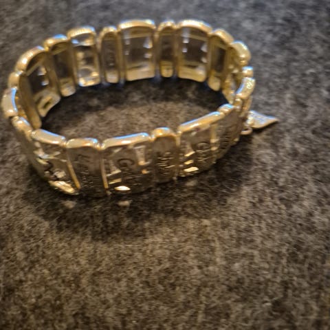 Mange godt ord er inngravert i dette fine armbåndet. Ikke sølv, men sølvfarge
