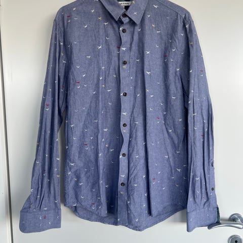 Meget fin Hugo Boss skjorte, regular fit. Lyseblå og hvit rutete. Med mørkeblå tegn. Bomull.