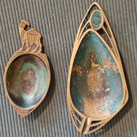 Selger et unikt askebeger i messing med utskåret ansiktmotiv – et flott samlerobjekt eller dekorativt element til hjemmet.