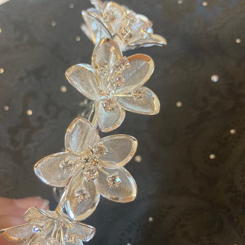 Hårpynt til brud. Håndlåget. Kjøpt på Brudesalongen i Larvik.