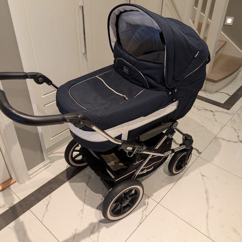 Emmaljunga barnevogn med tilbehør i svart