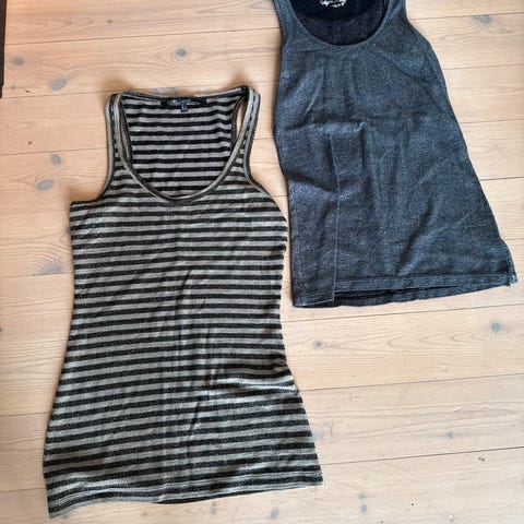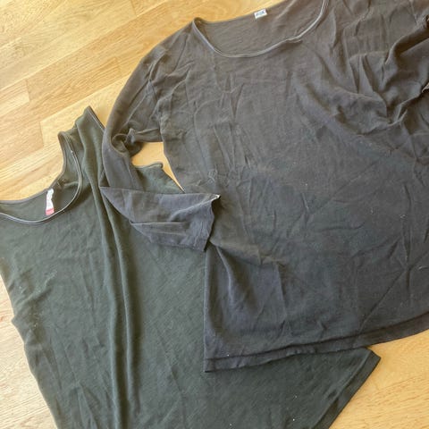 Tre pene topper, to i sort og en i brunt med diskre gullshimmer.