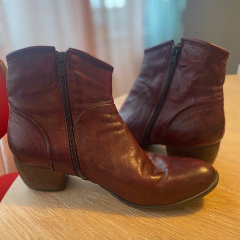 Mørk grå skinnskoletter fra Khrio i størrelse 37. Myk gummisåle med godt grep, glidelås på innsiden av foten. Hælhøyde er 5 cm. Lite brukt med minimal slitasje.