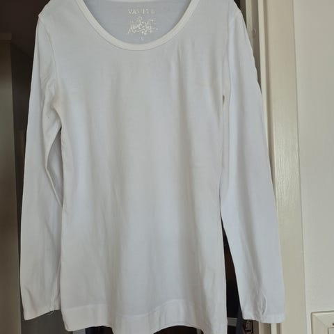 Toppen er brukt kun en gang har god passform i str xl. Farge hvit. Den har blonder på ermene og på selve toppen.