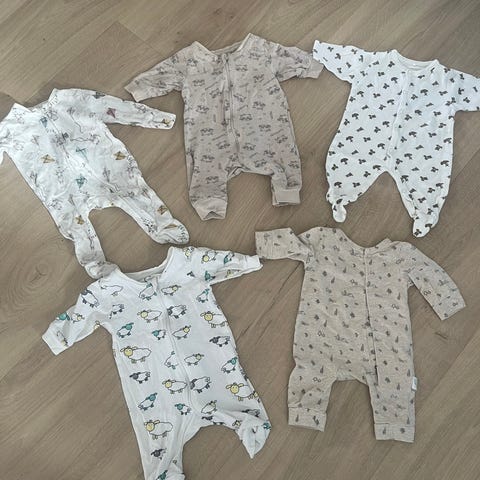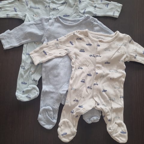 3 pysjamaser i str 50. Ein i velur med føtter og to fra cubus.