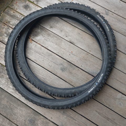 Til sykkelvogn, løpevogn etc 2 stk dekk med slange, størrelse sjekk bilder