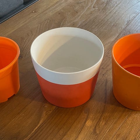 Feilfrie potteskjulere i myk plast fra 60-tallet.