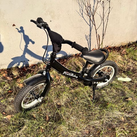 En nydelig førstegangs tråsykkel. Guttungen har fått mye komplimenter for rå sykkel. Veldig lett og ikke pedalbrems (som er en fordel). Mini lærte å sykle på denne som 3 år.