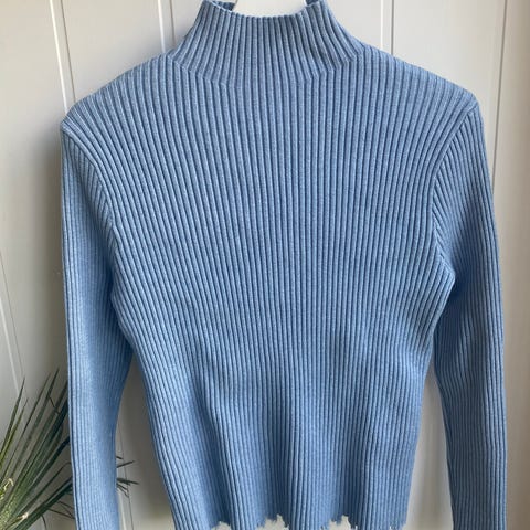 Myk og god. Halsen kan legges over skuldre eller som på bildet. Står str L på, men liten, så M er mere riktig størrelse. Kan og brettes opp om man ønsker den kortere.
