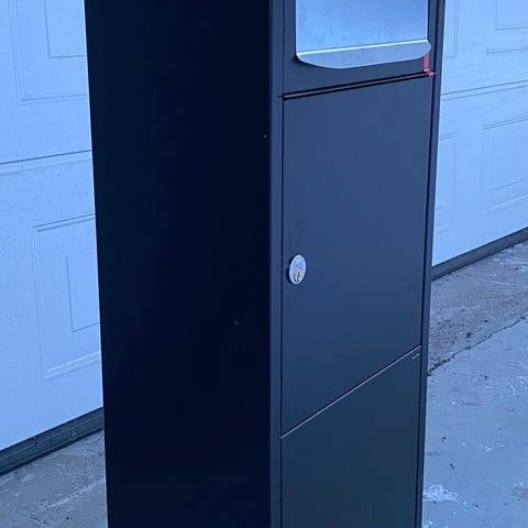 Avfallbeholder / søppelspann / papirkurv 40 liter for plassering ute på vegg eller stolpe / lysmast. Farge svart, inkl stål innerbeholder. Passer for borettslag, sameier, bedrift, gatetun etc.