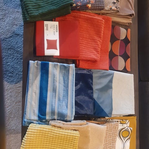 Har en eldre rund pute blir bare liggende. Trenger en vask før bruk, ellers i grei stand .