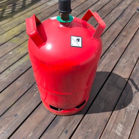 1 reiseboks med koblinger og 1 Mr.Heater slange.