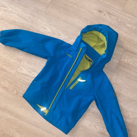 Bergans blå softshelljakke i str. 104.