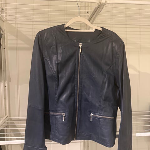 Pen jakke i materiale som ligner «semsket skinn» med lommer i str. 40. Som ny!