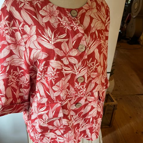 Flott lang jakke I velure fra designer Rosa Ronstedt str 44 kr 450