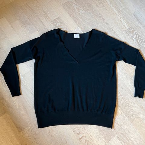 Original genser som er skrå og med splitter I sidene. Mål: 57 cm under armene og 65 cm lang på den korte siden.