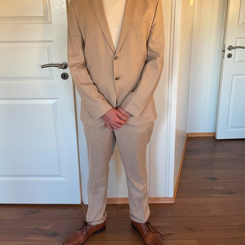 Dressen (blazer + dressbukse) selges for kr 1000-, fra Jack & Jones, og passer perfekt til herre/ungdom. Den er kun pent brukt én gang, så den fremstår som helt ny uten noe synlig slitasje eller andre brukstegn/flekker. Dresstypen er JPRSolaris og ble kjøpt til en nypris av 2299kr.