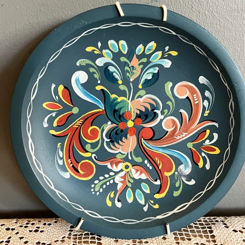 Rosemalt fat, har hengt til pynt.
