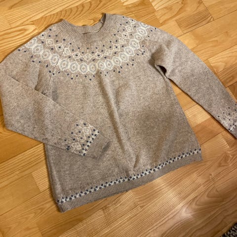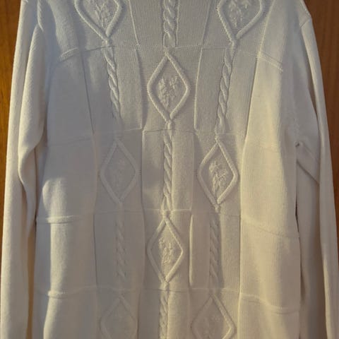 Genser hvit str.:L, laget av 60%nylon, 30%angora, 10% lamull. Veldig myk og koselig å ha på kroppen, ganske varmt på vinter. Pris 200kr tel:98037073