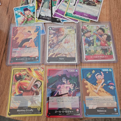 Bulk av OP07 One Piece 500 years in the future. Ca 850 kort selges for 1000,-. Inneholder common, uncommon og rares. Alt er engelsk