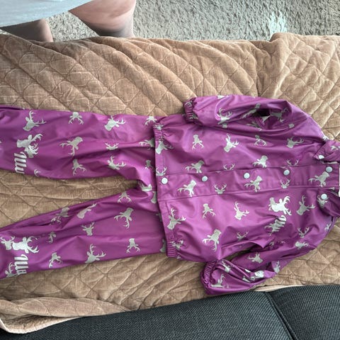 Dette settet ble kun brukt en gang da vi fikk det rett før hun endret størrelsen søtt hestemotiv som garantert blir en vinner hos jenter. Marineblå bukse med rosa kant oppe
