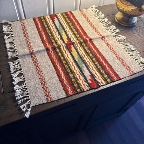 Flott vevd bordløper i ull med kremfarget bunnfarge